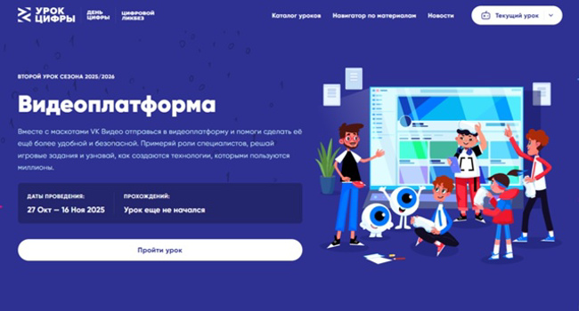 С 27 октября по 16 ноября VK проведет новый этап всероссийского проекта «Урок цифры» на тему «Видеоплатформа»